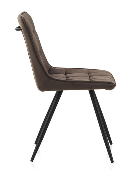 Pack Anubis x 4 sillas tapizada terciopelo marrón, las costuras a la vista en el respaldo y el asiento añaden un toque de artesanía y elegancia, mientras que la manija curva en la parte trasera ofrece un aspecto distintivo y funcionalidad adicional. Con un acolchado completo, tanto en el asiento como en el respaldo, esta silla garantiza una experiencia de asiento incomparable, brindando un soporte suave y reconfortante en cada momento. Ya sea para el comedor, la sala de estar o un rincón de lectura, la silla Anubis se convertirá en el punto focal de tu hogar, ofreciendo una combinación perfecta de confort y estilo que no pasará desapercibida. Pack por 4 unidades.