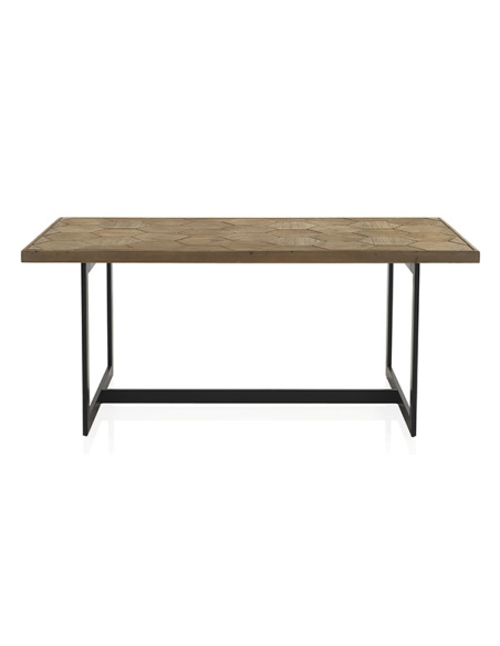 Mesa Dionisio en madera de fresno 178 x 90 cm con pie metálico, esta mesa rectangular es el epítome de la elegancia y la funcionalidad en tu comedor. El tablero de la mesa presenta un cautivador patrón hexagonal decorativo, que añade un toque de modernidad y estilo único a cualquier ambiente. Sus dimensiones generosas permiten cómodamente acomodar de 6 a 8 personas, proporcionando un espacio acogedor para compartir momentos inolvidables. El pie ancho metálico en color negro ofrece estabilidad y robustez, garantizando durabilidad y resistencia a lo largo del tiempo. Con sus patas negras que contrastan armoniosamente con el tablero de madera, esta mesa se convierte en el centro de atención de cualquier comedor.