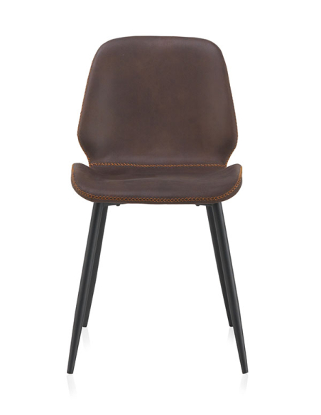 Silla Tláloc tapizada marrón patas metálicas negras