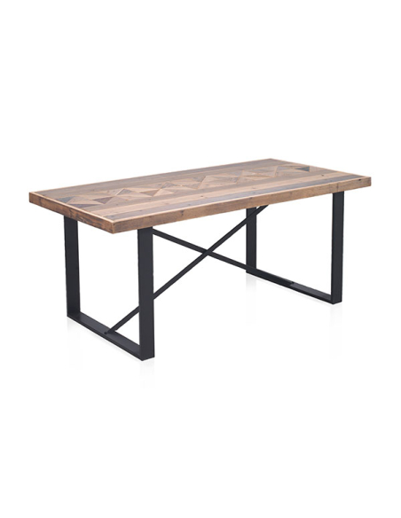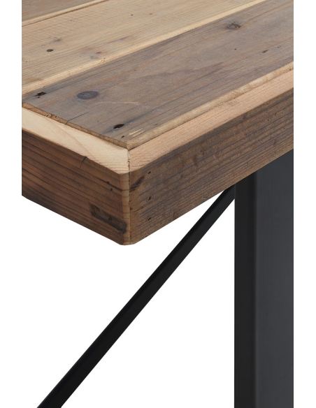Mesa Jano madera reciclada 180x90 cm con pie metálico, ofrece un amplio espacio para acomodar cómodamente de 6 a 8 personas, lo que la convierte en la opción perfecta para reuniones familiares o cenas con amigos. Las patas metálicas en color negro no solo proporcionan estabilidad y resistencia, sino que también complementan el aspecto industrial y moderno de la mesa. Ya sea en tu comedor, sala de estar o cualquier otro espacio, la mesa Jano será el centro de atención, agregando estilo y personalidad a tu hogar.