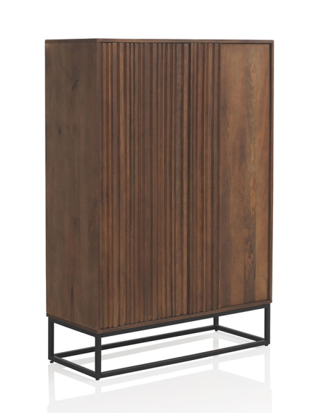 Aparador Eolo alto 2 puertas laminadas madera maciza de mango, ofrece la combinación perfecta de belleza natural y durabilidad, creando un punto focal elegante en cualquier habitación. Experimenta la conveniencia y modernidad con el sistema de apertura push, que permite acceder rápidamente al contenido almacenado en su interior, sin necesidad de tiradores visibles que rompan su estética limpia y minimalista. Además, el frente de las puertas presenta un relieve vertical que agrega textura y estilo, añadiendo un toque de distinción visual a tu espacio. El montaje es rápido y sencillo, ya que solo requiere fijar la base del pie, lo que te permite disfrutar de tu nuevo aparador sin complicaciones adicionales. La base metálica en color negro proporciona estabilidad y resistencia, mientras que las bisagras de cierre suave garantizan un funcionamiento silencioso y seguro.