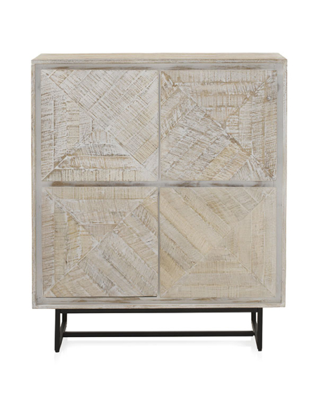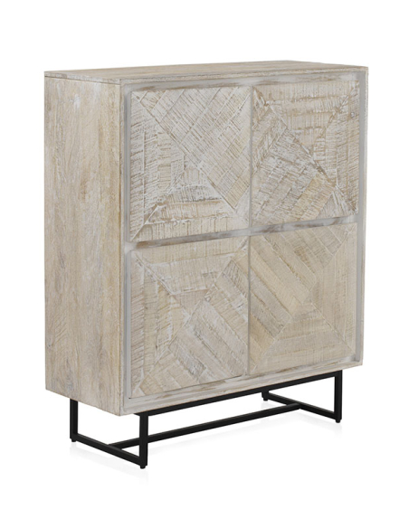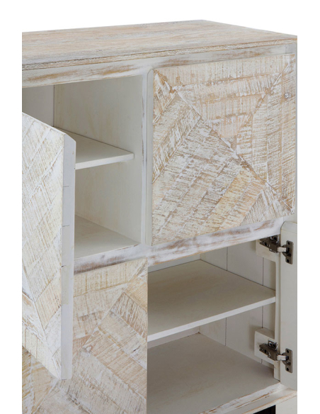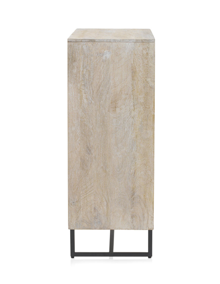 Aparador Frigg alto 4 puertas de madera de mango en color blanco, ofrece una estética elegante y atemporal que seguramente impresionará. Disfruta de la comodidad y la elegancia de las puertas con apertura tipo uñero, que ofrecen un acceso suave y sin esfuerzo al amplio espacio de almacenamiento interior. El frente de las puertas presenta un ligero relieve que añade textura y profundidad visual, agregando un toque de distinción al diseño general del aparador. En su interior, encontrarás estantes a media altura detrás de cada puerta, proporcionando un espacio organizado y accesible para tus pertenencias. Además, las bisagras de cierre suave garantizan un movimiento silencioso y seguro al abrir y cerrar las puertas, añadiendo un toque de lujo a tu experiencia diaria. El montaje es rápido y sencillo, ya que solo necesitas fijar la base del pie, lo que te permite disfrutar de tu nuevo aparador sin complicaciones adicionales. La base de metal negro añade un contraste moderno y sofisticado, completando el aspecto elegante y refinado del aparador Frigg.