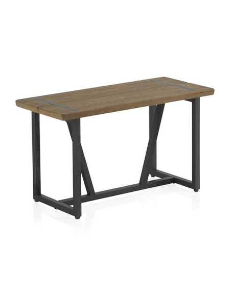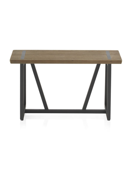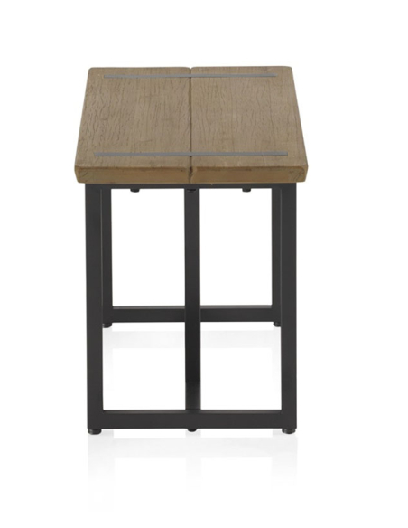 Banco Sif metálico pequeño con asiento de madera, un complemento perfecto para cualquier espacio. Este banco, de tamaño pequeño, presenta un diseño elegante con un asiento de madera formado por dos tablas de abeto atamborado, que añaden un toque de calidez y rusticidad. Las patas metálicas en negro, equipadas con protectores anti rayaduras de suelo, aseguran estabilidad y durabilidad, mientras que su montaje sencillo garantiza una instalación rápida y sin complicaciones. Ya sea como asiento adicional en tu comedor, en una zona de entrada o como parte de tu decoración exterior, el banco Si combina funcionalidad y estética de forma excepcional.