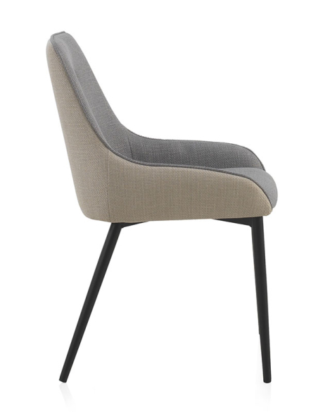 Pack Skadi x 4 sillas tapizadas bicolor beige/gris patas metálicas, elaborado con un tejido 100% poliéster de alta calidad que añade un toque de sofisticación a cualquier espacio. El respaldo y el asiento están cuidadosamente acolchados para proporcionar una experiencia de asiento excepcionalmente cómoda, ideal para largas conversaciones en la mesa o para disfrutar de momentos de relax. Además, las patas metálicas negras ofrecen una base resistente y elegante, que complementa perfectamente el diseño moderno de la silla. Ya sea en el comedor, la sala de estar o incluso en un espacio de trabajo, la Silla Skadi se adapta fácilmente a cualquier ambiente, añadiendo un toque de estilo y confort en cada ocasión. Pack por 4 unidades.