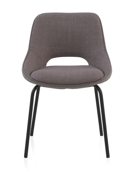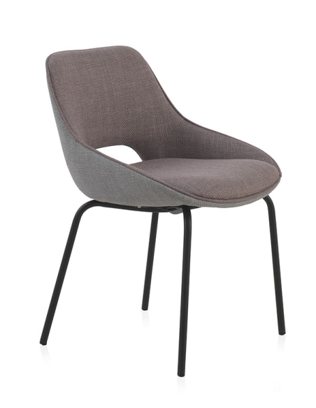 Silla Baldr tapizadas bicolor granate/gris patas metálicas negras, elaborado con un tejido 100% poliéster de primera calidad, donde la estructura muestra un color en el frente y otro en el dorso, añadiendo un toque de sofisticación y dinamismo a cualquier espacio. El diseño ergonómico del respaldo cuenta con una abertura en la parte inferior, que no solo agrega un elemento visual interesante, sino que también proporciona una ventilación adicional para una experiencia de asiento fresca y cómoda. Las patas metálicas negras ofrecen una base sólida y elegante, que complementa perfectamente el diseño moderno de la silla y asegura una estabilidad óptima en cualquier superficie.