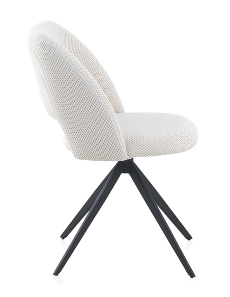 Pack Forseti x 4 sillas tapizadas giratorias nido de abeja en blanco, presenta un diseño único con un tejido tapizado 100% poliéster, caracterizado por un hermoso dibujo de nido de abeja que añade un toque de sofisticación y textura a cualquier espacio. El asiento y el respaldo están cuidadosamente acolchados para proporcionar una experiencia de asiento cómoda y relajante, ideal para largas conversaciones alrededor de la mesa o para momentos de descanso en la sala de estar. Las patas de madera maciza de hevea natural ofrecen una base sólida y elegante, que complementa perfectamente el diseño moderno de la silla y añade un toque de calidez a cualquier ambiente. Además, el respaldo presenta una abertura en la base, que no solo agrega un elemento visual interesante, sino que también proporciona una ventilación adicional para una experiencia de asiento fresca y cómoda. Pack por 4 unidades.