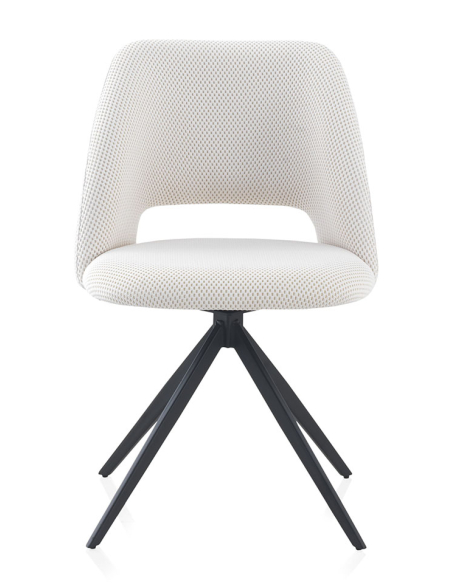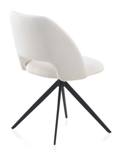 Silla Forseti tapizada giratoria nido de abeja en blanco con patas, presenta un diseño único con un tejido tapizado 100% poliéster, caracterizado por un hermoso dibujo de nido de abeja que añade un toque de sofisticación y textura a cualquier espacio. El asiento y el respaldo están cuidadosamente acolchados para proporcionar una experiencia de asiento cómoda y relajante, ideal para largas conversaciones alrededor de la mesa o para momentos de descanso en la sala de estar. Las patas de madera maciza de hevea natural ofrecen una base sólida y elegante, que complementa perfectamente el diseño moderno de la silla y añade un toque de calidez a cualquier ambiente. Además, el respaldo presenta una abertura en la base, que no solo agrega un elemento visual interesante, sino que también proporciona una ventilación adicional para una experiencia de asiento fresca y cómoda.
