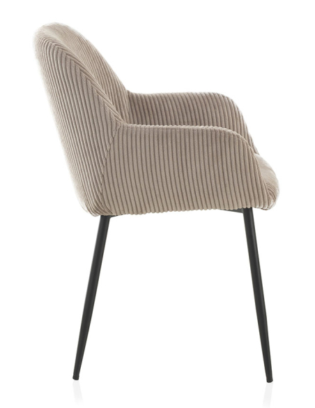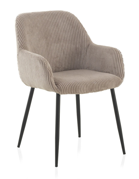 Pack Jord x 4 sillones tapizados en tela de pana lavanda con patas, con una textura gruesa y ultrasuave que invita a relajarse y disfrutar de momentos de descanso. El respaldo y el asiento están generosamente acolchados para brindar una experiencia de asiento incomparablemente cómoda, mientras que el respaldo redondeado y los apoya brazos en los laterales añaden un toque de sofisticación y estilo al diseño. Las patas metálicas en color negro ofrecen una base sólida y elegante, que complementa perfectamente el aspecto moderno del sillón y asegura una estabilidad óptima en cualquier superficie. Ya sea en el salón, el dormitorio o cualquier otro espacio de relax, el Sillón Jord es la elección perfecta para añadir un toque de estilo y confort a tu hogar. Con su atención al detalle y su calidad de construcción excepcional, este sillón no solo es un mueble funcional, sino también una pieza decorativa que eleva la estética de cualquier habitación. Pack por 4 unidades.