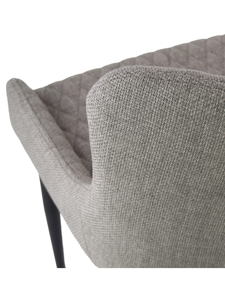 Silla de comedor Melissa topo, combina confort y sofisticación, perfecta para añadir estilo a cualquier ambiente. Sus patas de madera negra proporcionan un toque clásico y estable, mientras que la estructura acolchonada con tapizado en gris ofrece una sensación de suavidad y comodidad. El respaldo, junto a los apoyabrazos, presentan terminaciones al tono, creando una armonía visual que realza su diseño refinado. Ideal para salones, comedores o áreas de lectura, esta silla se adapta a diferentes estilos de decoración, brindando elegancia y funcionalidad en un solo mueble.