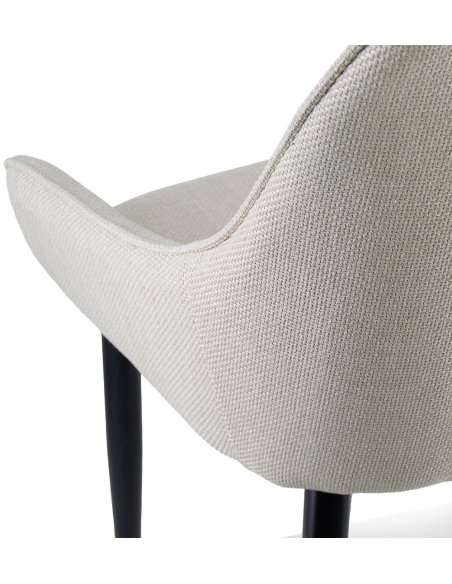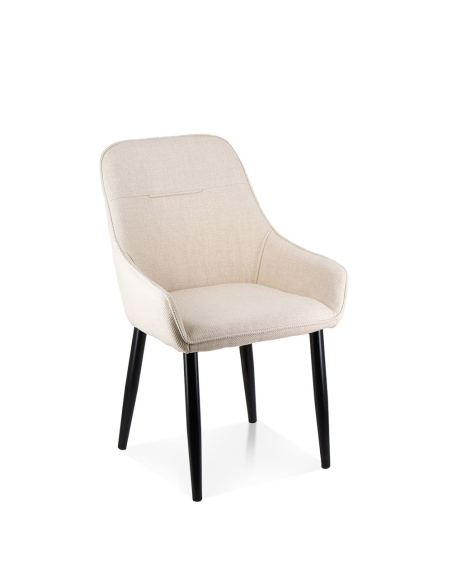 Silla de comedor Melissa beige, combina confort y sofisticación, perfecta para añadir estilo a cualquier ambiente. Sus patas de madera negra proporcionan un toque clásico y estable, mientras que la estructura acolchonada con tapizado en beige ofrece una sensación de suavidad y comodidad. El respaldo, junto a los apoyabrazos, presentan terminaciones al tono, creando una armonía visual que realza su diseño refinado. Ideal para salones, comedores o áreas de lectura, esta silla se adapta a diferentes estilos de decoración, brindando elegancia y funcionalidad en un solo mueble.