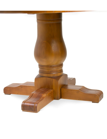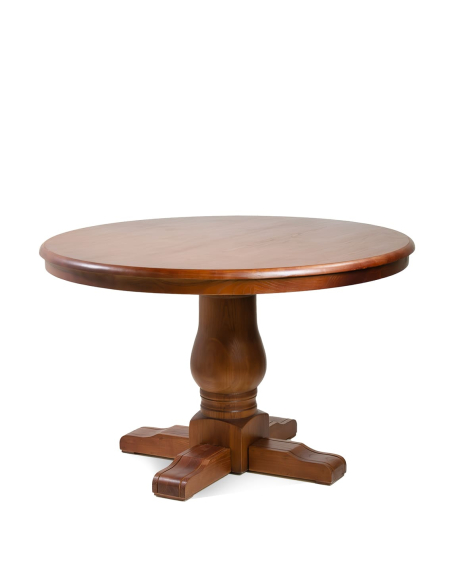 Mesa de comedor Panamá, con un diseño encantador y elegante. Su base torneada con cuatro patas ofrece estabilidad y un toque clásico que realza su apariencia. La tapa redonda de madera es ideal para crear un ambiente acogedor y cálido en tu comedor. Su diseño atemporal la convierte en una pieza versátil, perfecta tanto para interiores de estilo rústico como modernos.