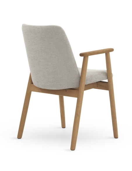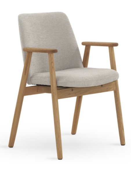Set 4 sillones con brazo Sirena roble y tapizado beige, la estructura de madera maciza de roble, robusta y elegante, sirve de base para un asiento y respaldo tapizados en un acogedor tejido de chenilla color beige. Los reposabrazos de madera completan un diseño ergonómico y visualmente atractivo. Diseñados pensando en el confort prolongado, estos sillones cuentan con espuma de alta densidad tanto en el asiento (30 kg/m3 ) como en el respaldo (24 kg/m3 ), asegurando una sentada cómoda y de gran soporte. La combinación del roble natural y el tono neutro del beige crea una atmósfera serena y acogedora, fácil de integrar en diversas paletas de color. Perfectos para dar un toque de distinción a tu mesa de comedor o como confortables asientos en una zona de lectura. El set Silena en roble y beige aúna diseño escandinavo, materiales de calidad y una comodidad excepcional, convirtiendo cualquier comida en una experiencia más placentera.