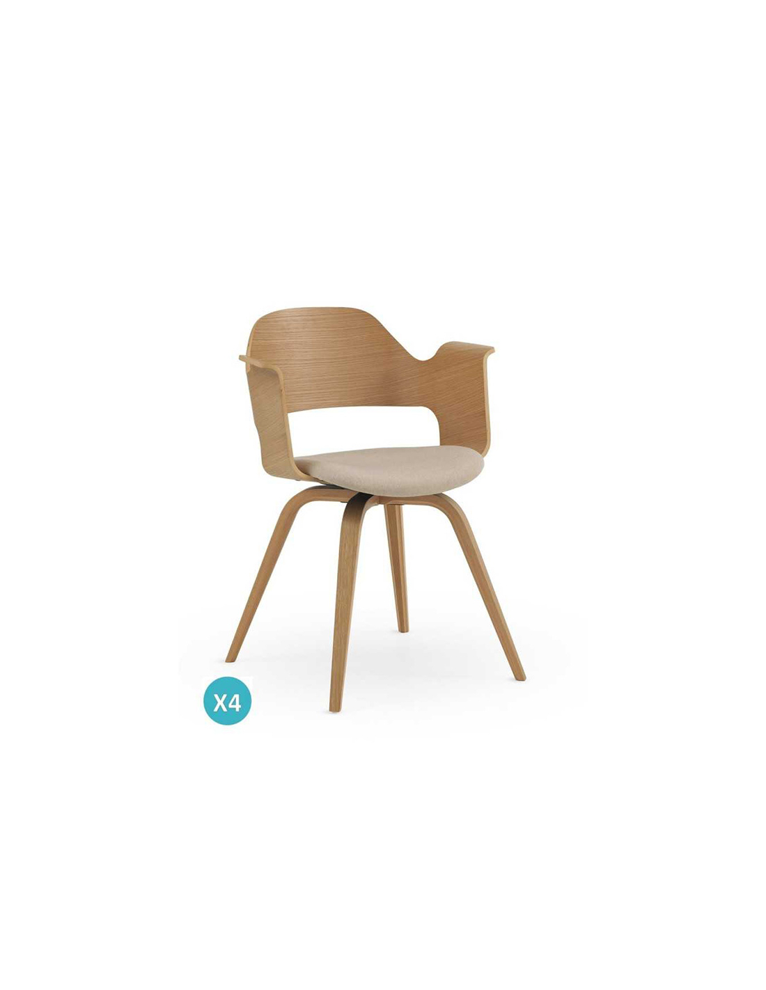 Set 4 sillas de comedor Coral roble natural asiento tapizado