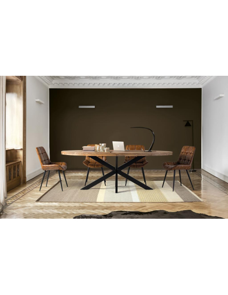 Mesa de comedor Sinfonía 220 cm, versión oval de la serie Sinfonía con 220 cm de largo que suavizan los recorridos y suman elegancia orgánica. La tapa de madera en tono natural descansa sobre una base de hierro en cruz, firme y visualmente liviana. Hay lugar para todos para 8 a 10 puestos cómodos, sin esquinas que incomoden. Perfecta para espacios sociales, combina con bancos o sillas clásicas y modernas por igual. Pieza protagonista para grandes momentos en casa.