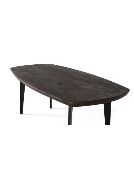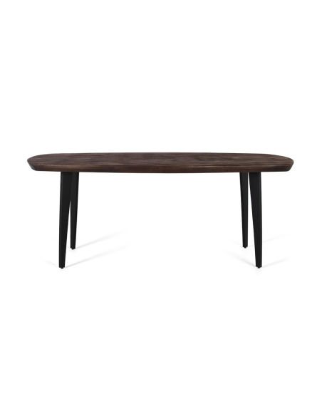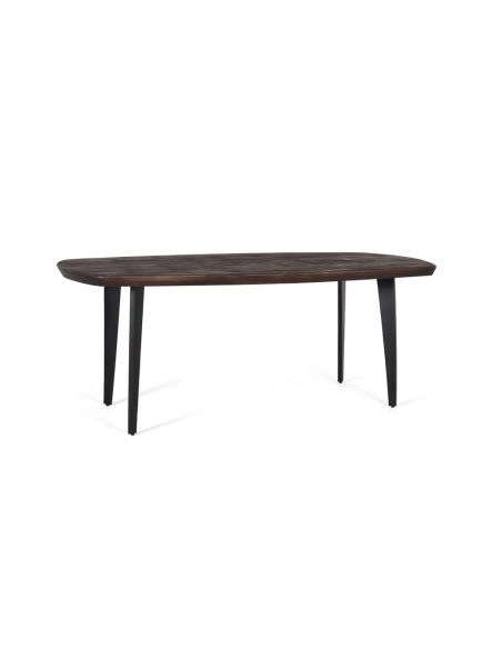 Mesa de comedor Capriccio, una silueta contemporánea con guiños mid-century: tapa en tono nogal con bordes suaves y patas cónicas de metal negro. El diseño estilizado aporta elegancia sin perder robustez visual, ideal para comedores modernos. La superficie amplia y de fácil mantenimiento resiste el uso diario, mientras su perfil delgado aligera el ambiente. Combina con sillas negras, tapizadas o en tonos cálidos para un conjunto equilibrado y sofisticado.