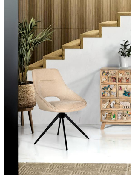 Set 2 sillas giratorias tela, un dúo funcional y muy actual. El asiento de forma envolvente está tapizado en una agradable tela beige con tacto suave y fácil cuidado, e incorpora un recorte lumbar que aligera la silueta sin restar soporte. La base metálica en negro, tipo “araña”, aporta estabilidad y un giro suave que facilita sentarse y levantarse con comodidad. Perfectas para mesa de comedor, despacho o zona de reuniones, combinan comodidad, resistencia y estética moderna en un conjunto de dos unidades listo para transformar el espacio.