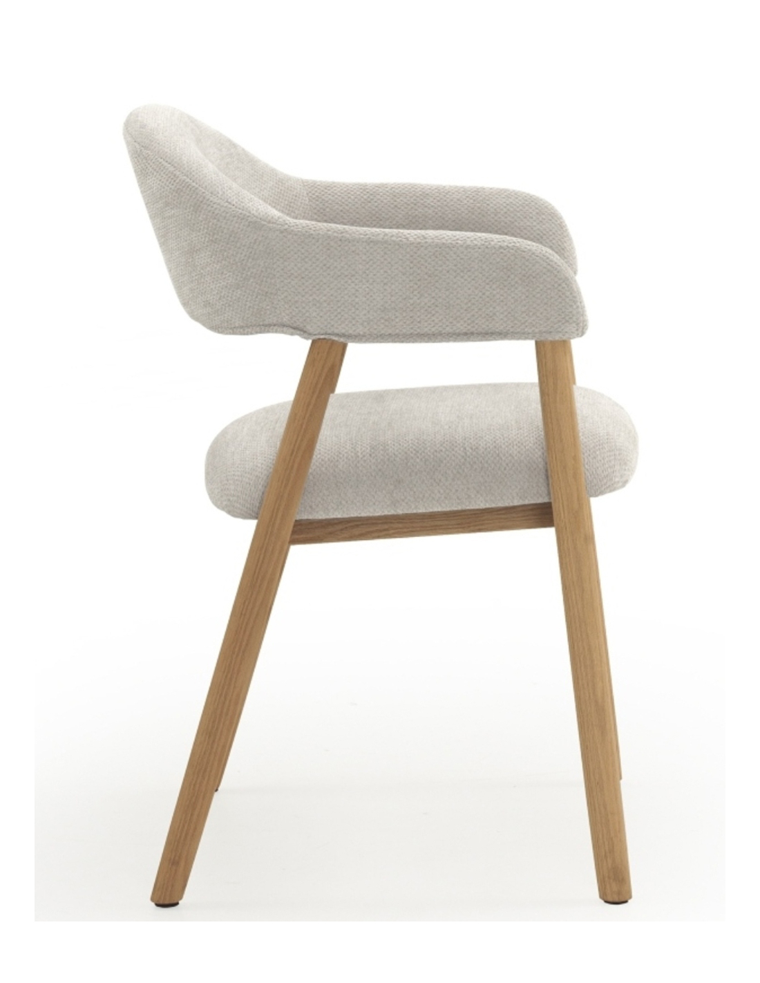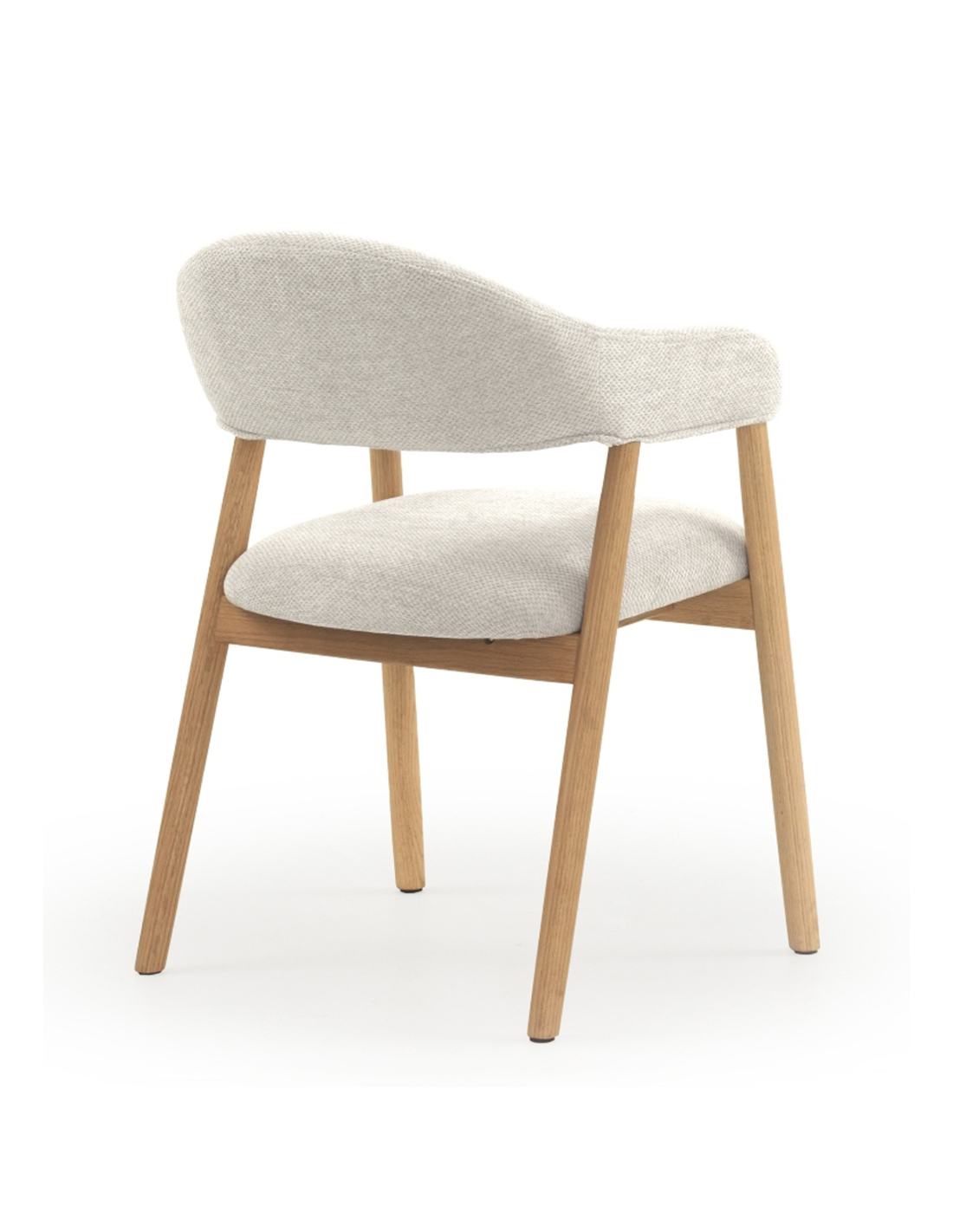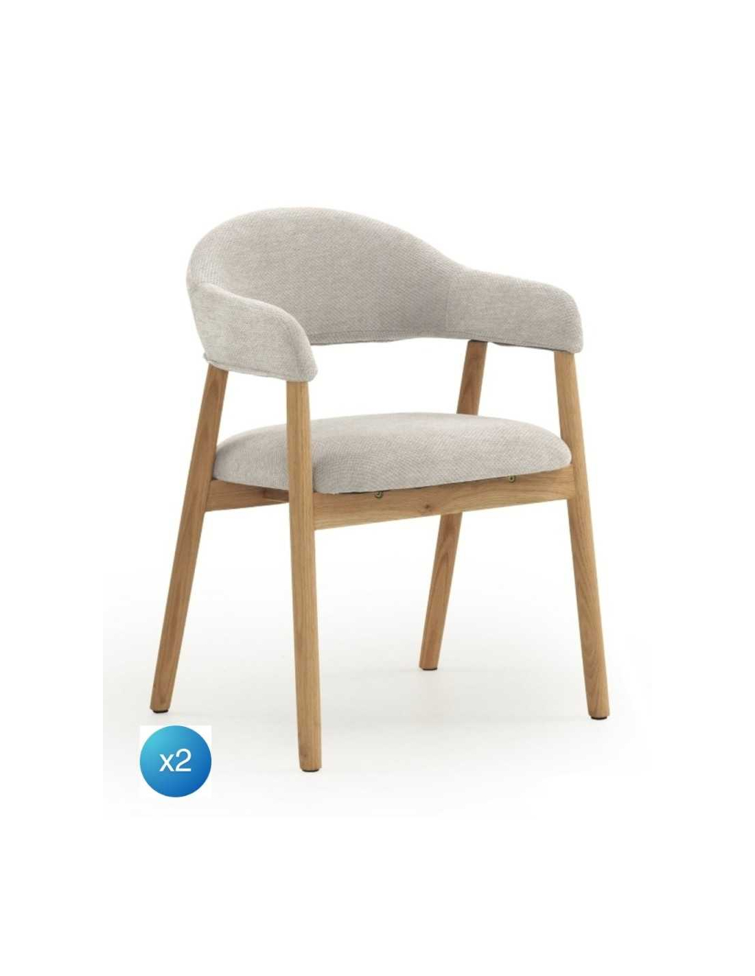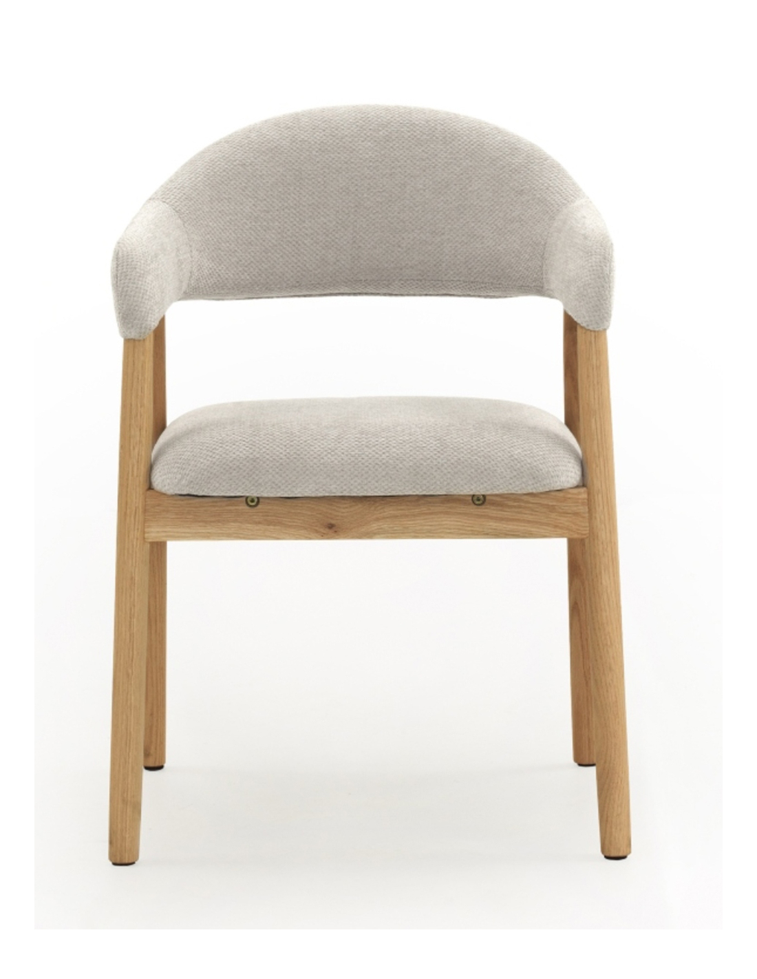 Set 2 sillones Poniente en madera roble tapizado blanco, combinan una sólida estructura de madera de roble macizo en acabado natural con un asiento y respaldo tapizados en un suave tejido de chenilla color blanco. El diseño destaca por sus líneas curvas y envolventes, con reposabrazos integrados que invitan a la comodidad. Pensados para largas sobremesas, el asiento y el respaldo cuentan con un acolchado de alta densidad (30 kg/m3 y 24 kg/m3 respectivamente), garantizando un confort óptimo. La calidez de la madera de roble natural contrasta bellamente con la luminosidad del tapizado blanco, creando una estética fresca, acogedora y muy actual. Este set es perfecto para comedores de estilo escandinavo, moderno o contemporáneo. Los sillones Poniente no solo son visualmente atractivos, sino que también ofrecen una sentada ergonómica y confortable, convirtiendo tu comedor en un espacio acogedor y lleno de estilo.