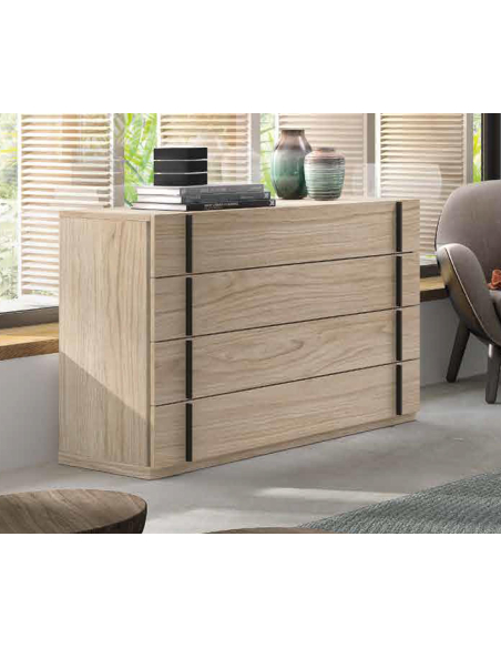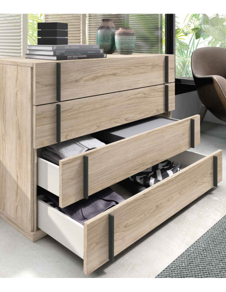 Cómoda Cuatro cajones Kúbica 19 con tirador ideal para la habitación de matrimonio.