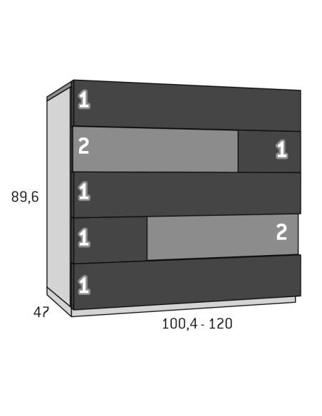 Medidas:   ↔ 100,4 cm  ↗ 47 cm  ↕ 89,6 cm / ↔ 120 cm  ↗ 47 cm  ↕ 89,6 cm