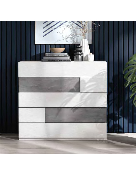 Cómoda cinco cajones Kúbica Tetris ideal para la habitación de matrimonio.