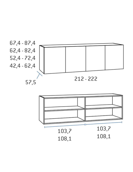Puente cama cuatro puertas con 56 cm de fondo y diferentes alturas. Disponible con la compra de una cama abatible