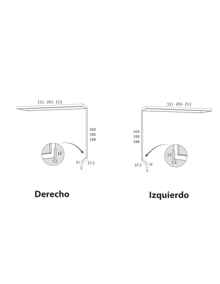 Puente de 151 cm alto 240 cm: ↔ 151 cm ↗ 37,5 cm ↕ 180 cm