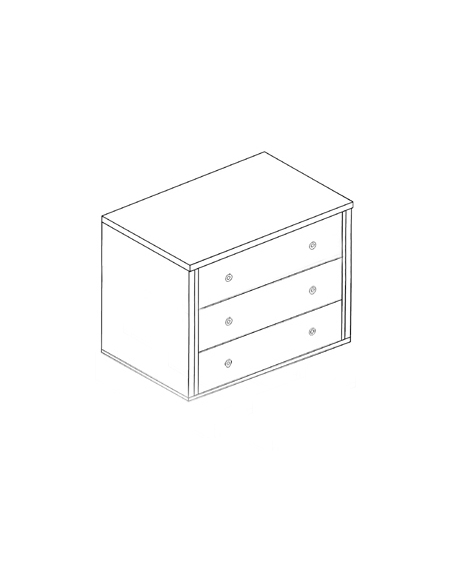 Cajonera de tres cajones para armarios de la misma colección con estante en acabado textil.