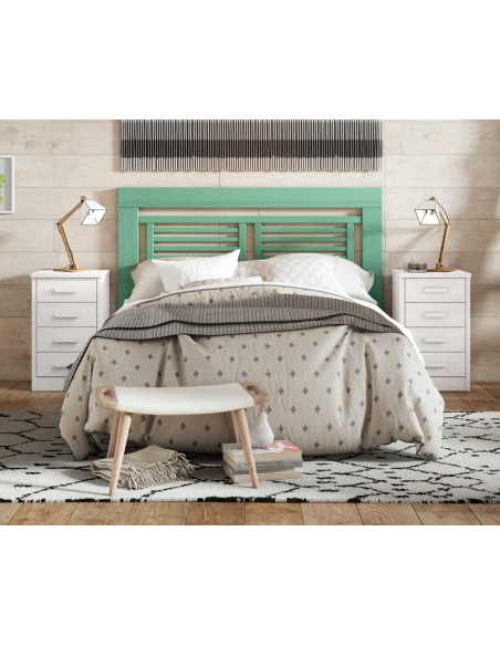 - Acabado grupo 3, cabecero en Decapé Turquesa y mesitas en Decapé BB. Tirador madera 4. *Especificar todos los tonos por orden.