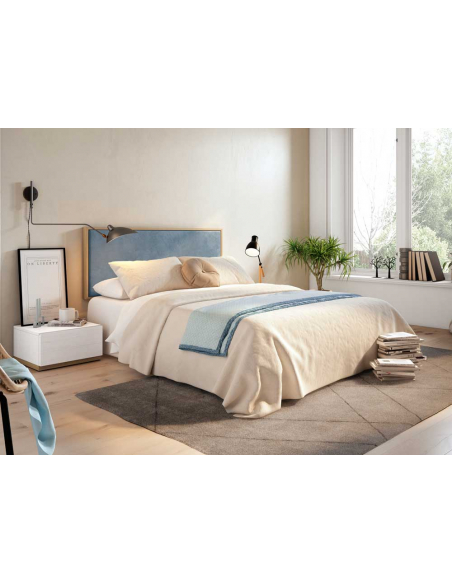Composición de dormitorio modelo Zoe, todo lo que necesitas para amueblar tu zona favorita de descanso. Sencillo y moderno conjunto para habitación compuesto de cabecero Zoe tapizado de 150 cm y dos mesitas Zoe un cajón.