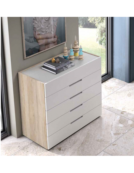 Cómoda Sare de 5 cajones con tapa y frentes lacados: → 100,3 cm ↖ 47,9 cm ↑ 87,7 cm