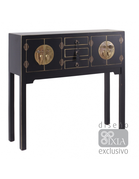 Consola Oriental Negra 4 Puertas y 3 Cajones