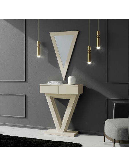 Consola dos cajones madera con pie triangular NORA