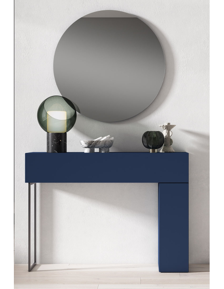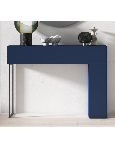 ¿Quieres obtener un recibidor más funcional? Te presentamos la consola Piero 110 cm con pata armario. Una manera discreta de mantener tu zona de entrada mucho más ordenada, sin renunciar al estilo y al diseño. Obtén un espacio a la última tendencia con un mueble auxiliar minimalista para tu recibidor. Te aportará una mayor sensación de orden y confort, muy necesarias para sentirnos cómodos en nuestro hogar. Esta consola, perfectamente acabada hasta el mínimo detalle, se compone de tres partes: Una consola/cajón horizontal, con el tamaño perfecto para guardar todos los objetos del día a día, como las llaves, las gafas de sol o el monedero. También incluye un armario vertical que actúan como pata, que podrás ubicar a derecha o izquierda. Por último, una pata de diseño en acero inoxidable. Personaliza tu mueble eligiendo aquellos colores que desees de nuestra carta de colores.