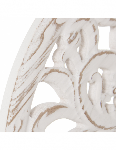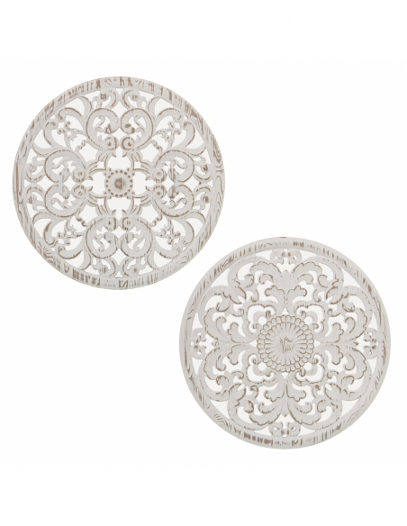 Set 2 retablos madera calados blanco decapé circular para darle un toque diferente y cálido a cualquier estancia de tu hogar.