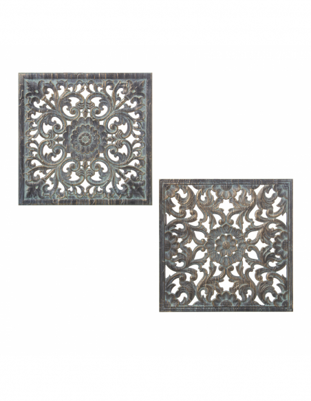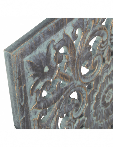 Set 2 retablos madera calados verde envejecido dorado para darle un toque diferente y cálido a cualquier estancia de tu hogar.
