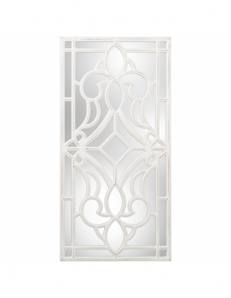 Retablo madera calado espejo blanco decapé para darle un toque diferente y cálido a cualquier estancia de tu hogar.