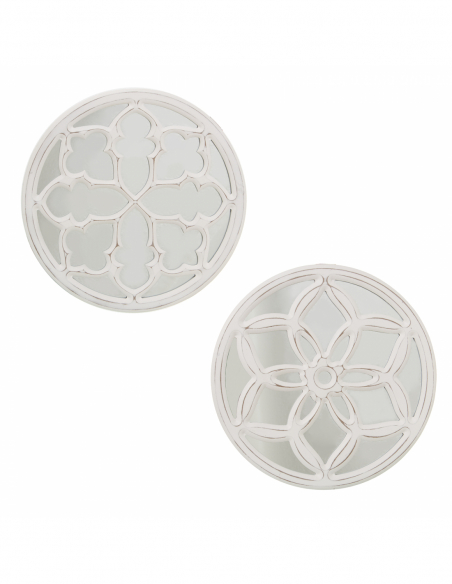 Set 2 retablos madera con espejo blanco decapé para darle un toque diferente y cálido a cualquier estancia de tu hogar.