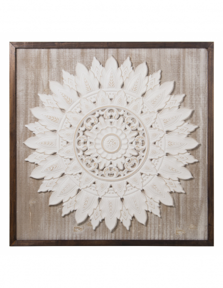Set 2 retablos madera calados blanco decapé sobre cuadro enmarcado para darle un toque diferente y cálido a cualquier estancia de tu hogar.