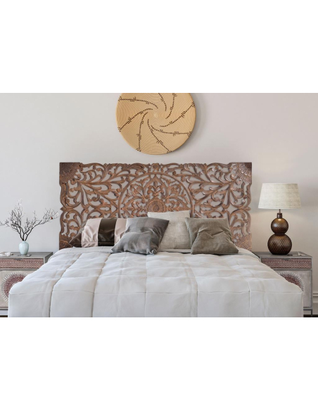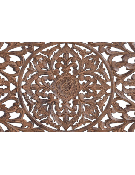 Panel decorativo madera de mango natural. Panel decorativo madera tallado a mano con diseño de motivos naturales en color marrón. Posibilidad de colgar vertical u horizontal.