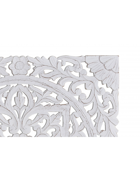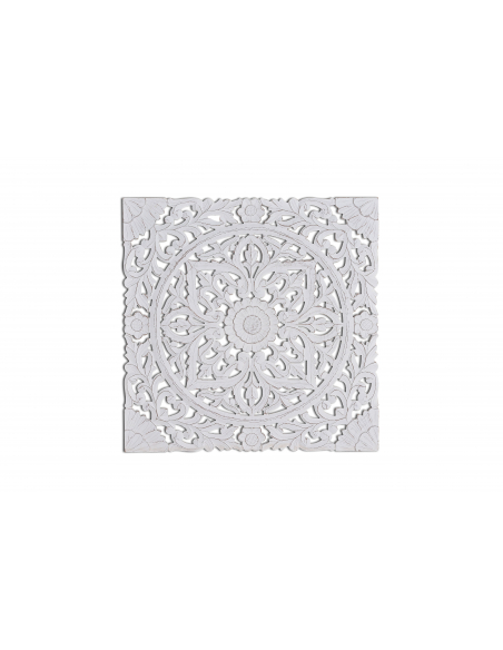 Panel decorativo cuadrado madera blanco envejecido. Panel decorativo madera tallado a mano con diseño de motivos naturales en color blanco. Posibilidad de colgar vertical u horizontal.