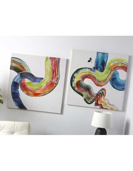 Set 2 lienzos abstractos colores bonitos y prácticos para decorar cualquier pared de tu hogar. Dale un toque de color y originalidad y conquista cualquier estancia de tu hogar con este bonito lienzo.