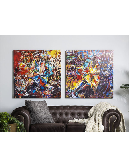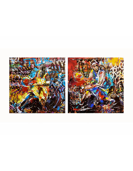 Divertido y colorido set de 2 Lienzos decorativos impresos al 50% óleo con detalles de basket abstractos.