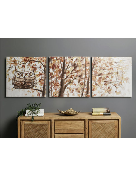 Set 2 Lienzos decorativos impresos al 50% óleo con detalle de arboles otoñales con dos búhos.