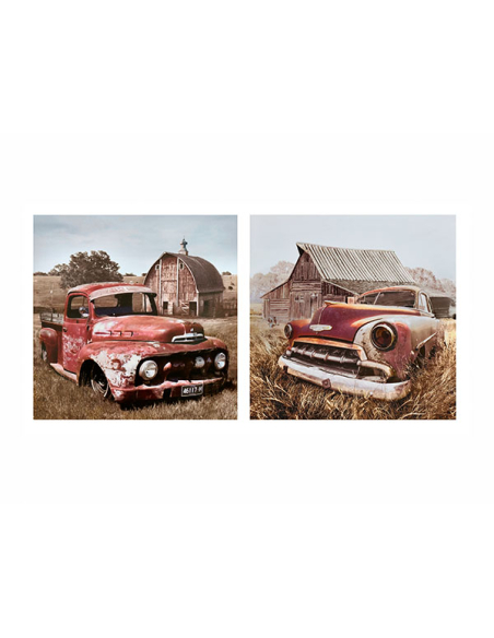 SEt 2 Lienzos decorativos camionetas vintage granja