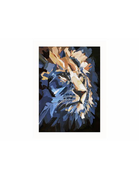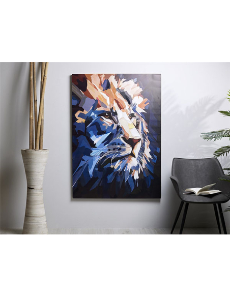 Impresionante Lienzo decorativo impreso al 50% con la figura de la cabeza de un león en colores con el fondo negro.
