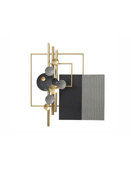 Panel decoración abstracto cuadrados con platos oro y negro y gris
