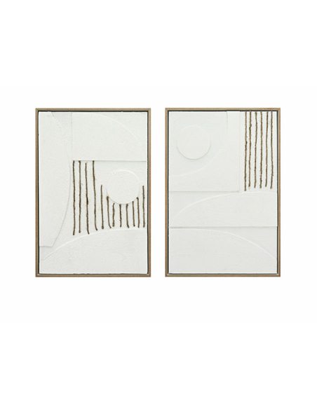 Set 2 Cuadros abstractos blancos relieve y cuerdas
