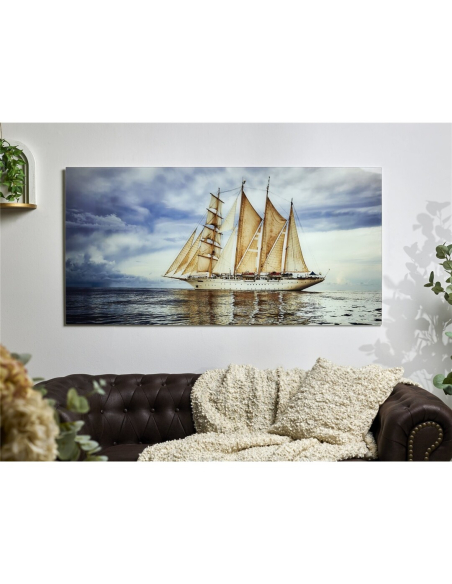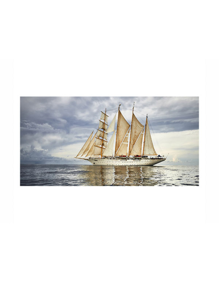 Cuadro cristal impreso velero de 4 mástiles. Esta obra con disposición horizontal nos transportara directo al océano. La imagen nítida y precisa nos deja ver el reflejo en el mar, el movimiento del agua y la textura de las velas. Este cuadro es ideal para los amantes del mar y la naturaleza. Ideal para una oficina o una sala de estar. La impresión de alta resolución sobre cristal captura cada detalle con precisión.