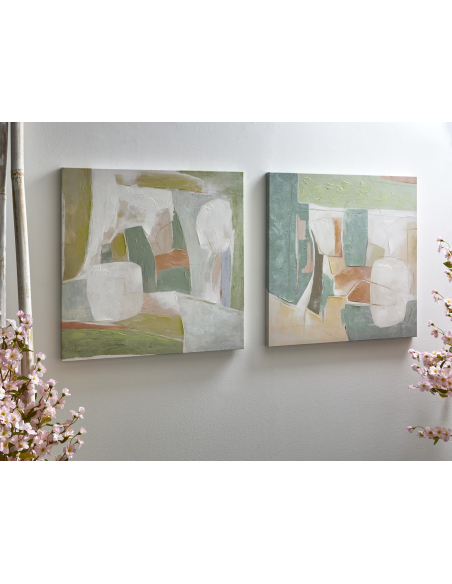 Set 2 Lienzos impresos abstracto 50% al óleo verde