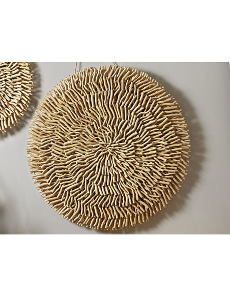 Panel círculos superpuestos ramas natural 120 cm realizado artesanalmente con pequeños cortes de madera. Cada pieza de madera contribuye a la creación de un diseño envolvente y armonioso, añadiendo un toque de calidez y estilo a tus paredes. La disposición circular crea un efecto visual intrigante, mientras que la calidad artesanal resalta la belleza natural de la madera. Dale a tu hogar un toque distintivo con este elegante panel que fusiona la artesanía con la modernidad.